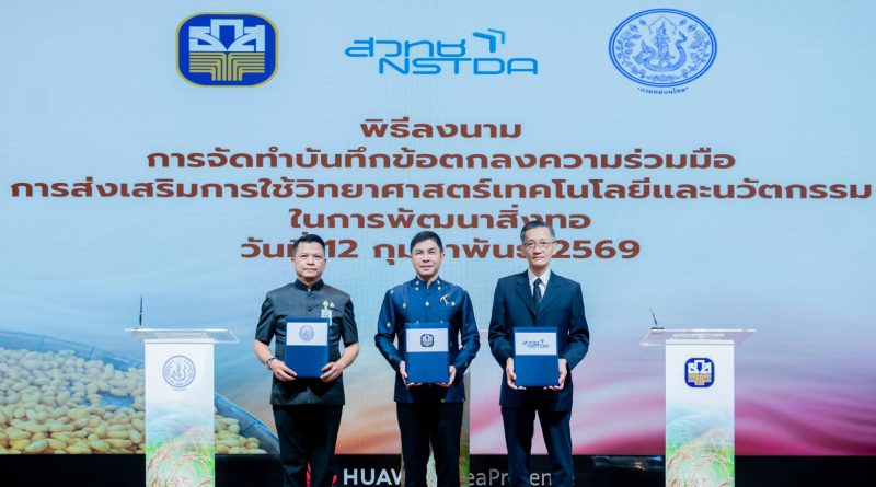 (วันที่ 12 กุมภาพันธ์ 2569) กระทรวงการอุดมศึกษา วิทยาศาสตร์ วิจัยและนวัตกรรม (อว.) โดย สำนักงานพัฒนาวิทยาศาสตร์และเทคโนโลยีแห่งชาติ (สวทช.) ร่วมกับ กรมหม่อนไหม (มม.) และธนาคารเพื่อการเกษตรและสหกรณ์การเกษตร (ธ.ก.ส.) ลงนามบันทึกข้อตกลงความร่วมมือ “การส่งเสริมการใช้วิทยาศาสตร์ เทคโนโลยีและนวัตกรรมในการพัฒนาสิ่งทอ” เพื่อยกระดับประสิทธิภาพการผลิตและมาตรฐานผ้าไหมตลอดห่วงโซ่อุปทาน