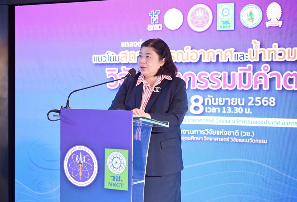 วช. จุฬา ม.เกษตร และกรมอุตุนิยมวิทยา ร่วมแถลงข่าวแนวโน้มสถานการณ์อากาศและน้ำท่วมในภาคกลาง จากชุดข้อมูล เทคโนโลยี จากงานวิจัยและนวัตกรรม เตรียมรับมือและเฝ้าระวังภัยภัยจากพายุ