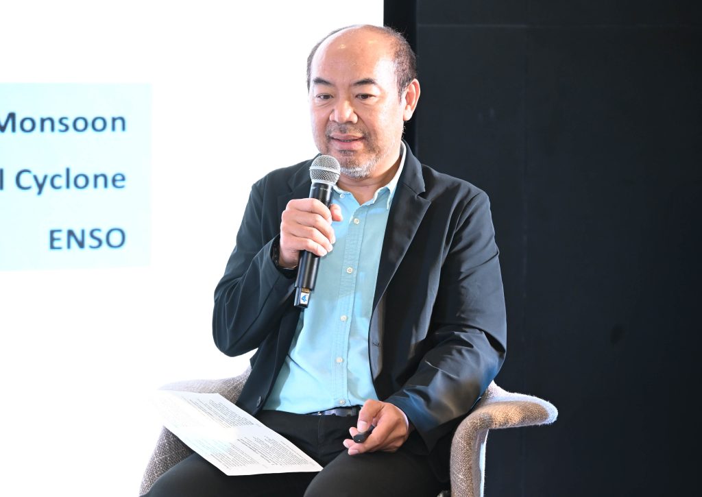 ภายในงานแถลงข่าว มีการเสวนาเรื่อง “แนวโน้มสถานการณ์อากาศและน้ำท่วมในภาคกลาง วิจัยและนวัตกรรมมีคำตอบ” ดำเนินรายการ โดย รองศาสตราจารย์ ดร.สุจริต คูณธนกุลวงศ์ ผู้อำนวยการแผนงาน แผนงานเป้าหมายสำคัญตามยุทธศาสตร์ ววน. ของ วช. พร้อมด้วยวิทยากรผู้เชี่ยวชาญร่วมเสวนาใน 3 ประเด็นสำคัญ ดังนี้