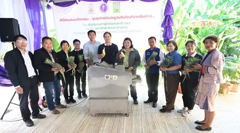 วช. ร่วมกับ ม.มหาสารคาม นำนวัตกรรมชุดแปรรูปผลิตภัณฑ์สับปะรด ยกระดับและเพิ่มมูลค่าผลผลิต หนุนวิสาหกิจชุมชนกลุ่มผู้ปลูกสับปะรดและแปรรูปบ้านโคกนาดี จ.นครพนม