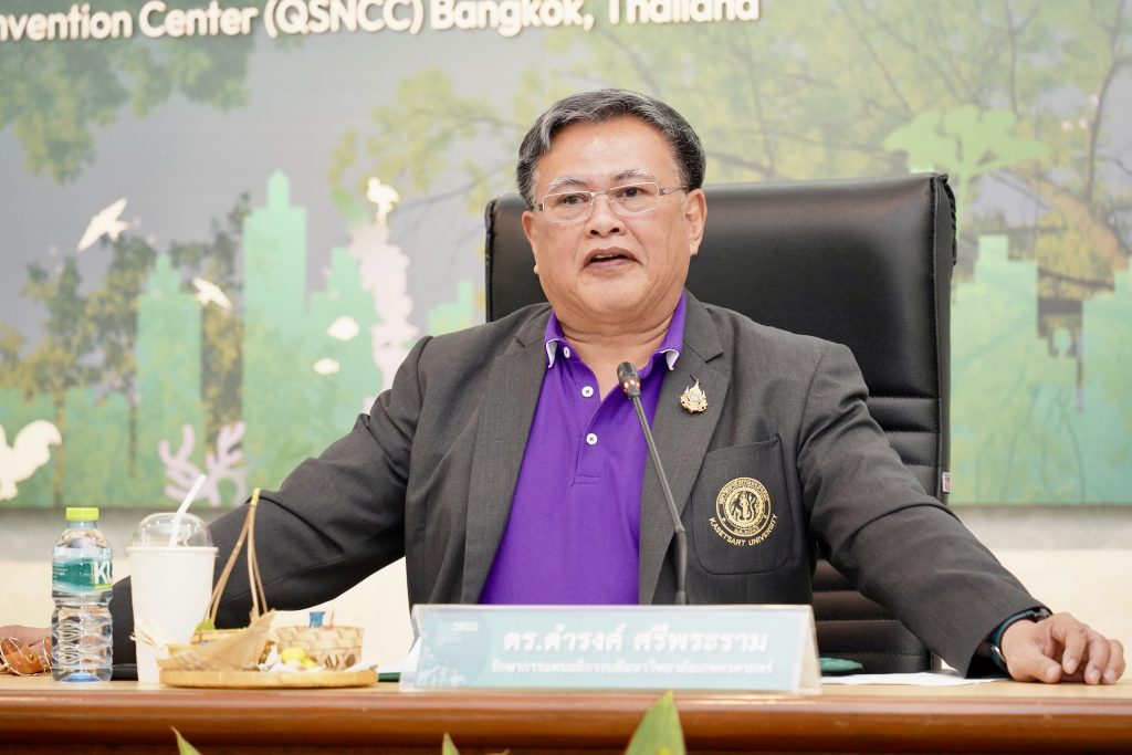 ดร.ดำรงค์ ศรีพระราม รักษาการแทนอธิการบดีมหาวิทยาลัยเกษตรศาสตร์ กล่าวเน้นการมีส่วนร่วมและความร่วมมือระหว่าง มก. กับ วช. และหน่วยงานเครือข่ายระดับชาติและนานาชาติ โดย มก. มุ่งนำองค์ความรู้ งานวิจัย และการเรียนการสอนด้านความหลากหลายทางชีวภาพมาผนึกกำลังกับทุกภาคส่วน เพื่อสร้างความเข้าใจและความร่วมมือในทุกมิติ ทั้งระดับชาติและนานาชาติ พร้อมกล่าวถึงนิทรรศการเฉลิมพระเกียรติ 70 พรรษา สมเด็จพระกนิษฐาธิราชเจ้า กรมสมเด็จพระเทพรัตนราชสุดาฯ สยามบรมราชกุมารี ซึ่งมก.ร่วมกับวช.จัดขึ้น ภายใต้แนวคิด“ มรรคาแห่งความสมดุล : วัฏจักรความหลากหลายทางชีวภาพกับการอนุรักษ์อย่างยั่งยืน”