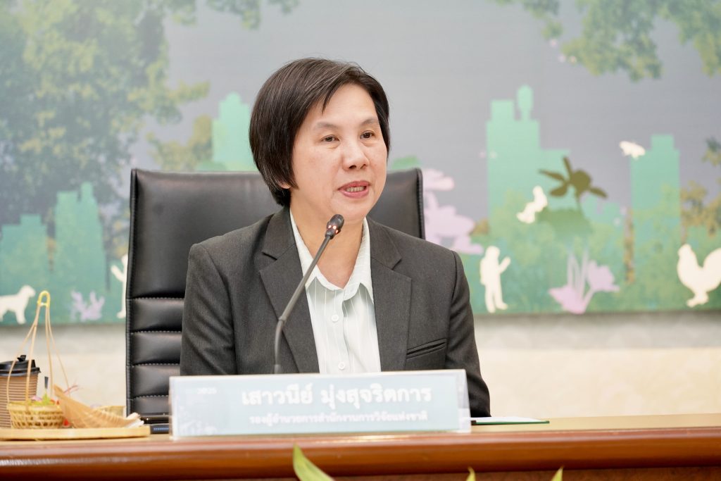 ด้าน นางสาวเสาวนีย์ มุ่งสุจริตการ รองผู้อำนวยการสำนักงานการวิจัยแห่งชาติ กล่าวว่า วช. ให้ความสำคัญกับความหลากหลายทางชีวภาพ ซึ่งเป็นจุดเด่นของประเทศไทย โดยสนับสนุนทุนวิจัยทั้งด้านการอนุรักษ์ ฟื้นฟู และการใช้ประโยชน์จากทรัพยากรธรรมชาติ ตั้งแต่ระดับชุมชนจนถึงระดับนโยบาย เพื่อให้เกิดความสมดุลระหว่างการอนุรักษ์และการใช้ประโยชน์ ผลงานวิจัยที่นำมาจัดแสดง ได้แก่ ธนาคารเซลล์สัตว์ ปลิงทะเลสกุลใหม่ของโลก เห็ดเผาะสิรินธร ระบบนิเวศหญ้าทะเล และระบบนิเวศกองหินใต้น้ำ ซึ่งสะท้อนถึงการวิจัยที่ต่อเนื่องและสร้างผลกระทบเชิงปฏิบัติได้จริง