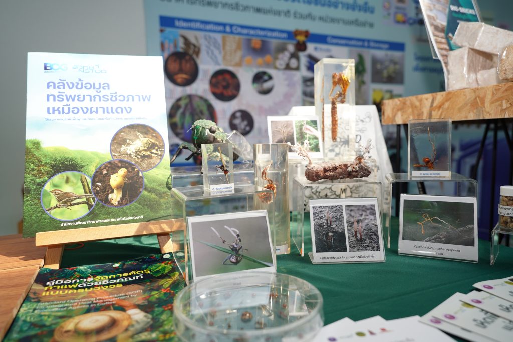 ทั้งนี้ ไบโอเทค สวทช. โดยศูนย์ชีววัสดุประเทศไทย หรือ TBRC ซึ่งเป็นคลังทรัพยากรชีวภาพแห่งชาติ และธนาคารทรัพยากรชีวภาพแห่งชาติ (NBT) เป็นโครงสร้างพื้นฐานสำคัญที่สนับสนุนการอนุรักษ์และจัดเก็บตัวอย่างชีวภาพระยะยาวร่วมนำผลงานวิจัยมาจัดแสดงตามแนวคิด BCG (Bio-Circular-Green Economy) เพื่ออนุรักษ์ ฟื้นฟู และใช้ประโยชน์ทรัพยากรชีวภาพอย่างยั่งยืนในพื้นที่ผาแดง จังหวัดตาก ผ่านการเชื่อมโยงฐานข้อมูลมาตรฐานนวัตกรรมและการใช้ประโยชน์ พร้อมทั้งเป็นหน่วยงานที่มีบทบาทสำคัญในการเก็บรักษาเชื้อจุลินทรีย์ศักยภาพและจัดทำคลังอนุรักษ์ความหลากหลายของเชื้อรา (Fungarium) เพื่อเป็นมาตรฐานอ้างอิงอนุกรมวิธาน สำหรับการใช้ประโยชน์ทรัพยากรชีวภาพให้มีความถูกต้องและปลอดภัย โดยผลงานวิจัยที่นำมาจัดแสดงในงานแถลงข่าวเป็นผลงานที่สามารถนำไปต่อยอดใช้งานได้จริง ได้แก่
