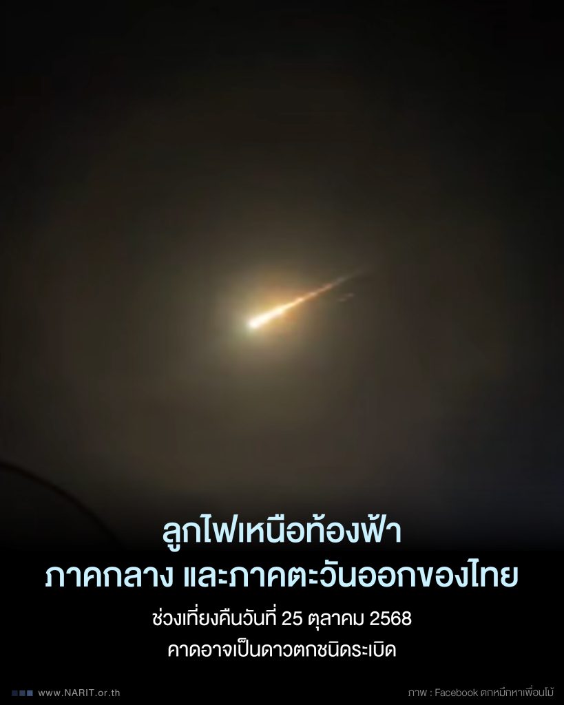 ลูกไฟเหนือท้องฟ้าภาคกลางและภาคตะวันออกของไทย ช่วงเที่ยงคืนวันที่ 25 ตุลาคม 2568 คาดอาจเป็นดาวตกชนิดระเบิด