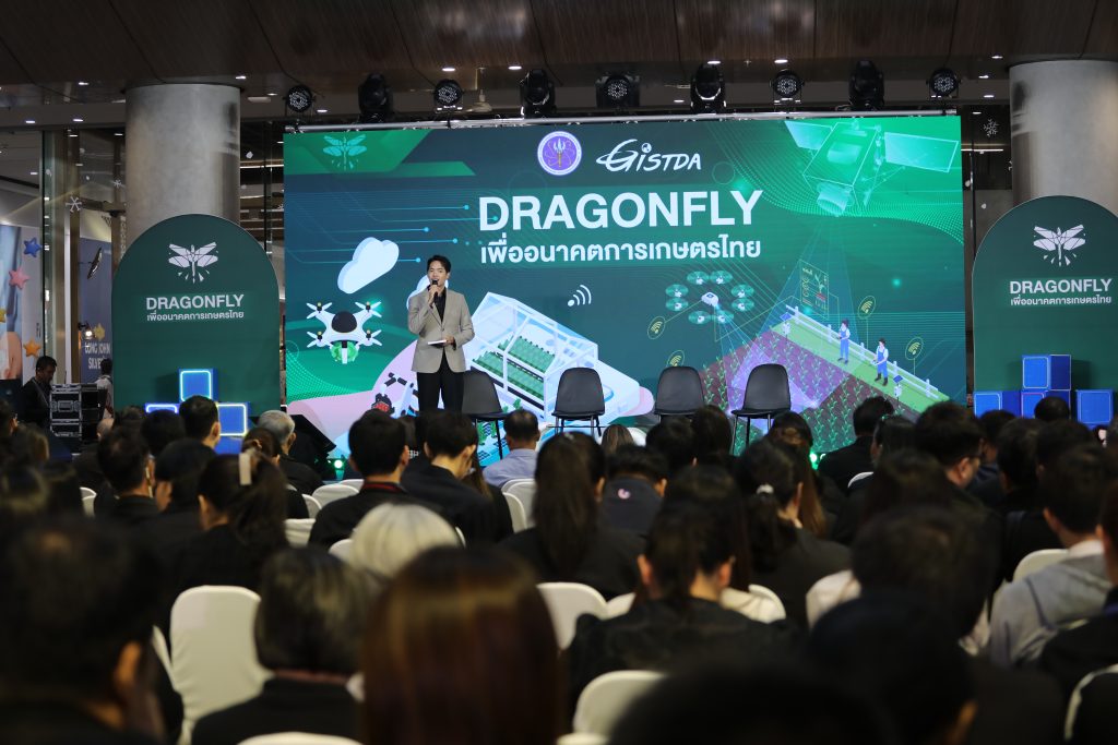 งานวันนี้จัดขึ้นเพื่อส่งเสริมสร้างการรับรู้วงกว้างต่อการใช้งานแอปพลิเคชัน “DRAGONFLY : เพื่ออนาคตเกษตรไทย สู่เกษตรดิจิทัล” เพื่อเน้นย้ำถึงความสำคัญของการนำเทคโนโลยีอวกาศและภูมิสารเทศ หรือ ข้อมูลจากดาวเทียม มาช่วยยกระดับภาคการเกษตรไทยให้ก้าวทันต่อการเปลี่ยนแปลงหลากหลายมิติของโลกในปัจจุบัน เพื่อให้พวกเขาสามารถใช้ข้อมูลจากแอปพลิเคชันให้เกิดประโยชน์สูงสุด แม้เทคโนโลยีจะพร้อม แต่การเปลี่ยนผ่านจากการทำเกษตรเชิงประสบการณ์ไปสู่การทำเกษตรที่ ใช้ข้อมูลเป็นฐาน (Data-Driven) โดยเฉพาะข้อมูลที่ซับซ้อนอย่างภูมิสารสนเทศ จำเป็นต้องอาศัยการสร้างความเชื่อมั่นอย่างต่อเนื่อง การยกระดับความรู้ทางเทคโนโลยีให้เกษตรกร จึงต้องร่วมมือกับทุกภาคส่วนที่เกี่ยวข้องเพื่อการพัฒนาและถ่ายทอดทักษะด้านดิจิทัล และพิสูจน์ให้เห็นว่าข้อมูลจากดาวเทียมใน DRAGONFLY สามารถเพิ่มขีดความสามารถของเกษตรกรในการรับมือกับการเปลี่ยนแปลงสภาพภูมิอากาศที่รุนแรงและคาดเดาได้ยากในอนาคตได้จริง