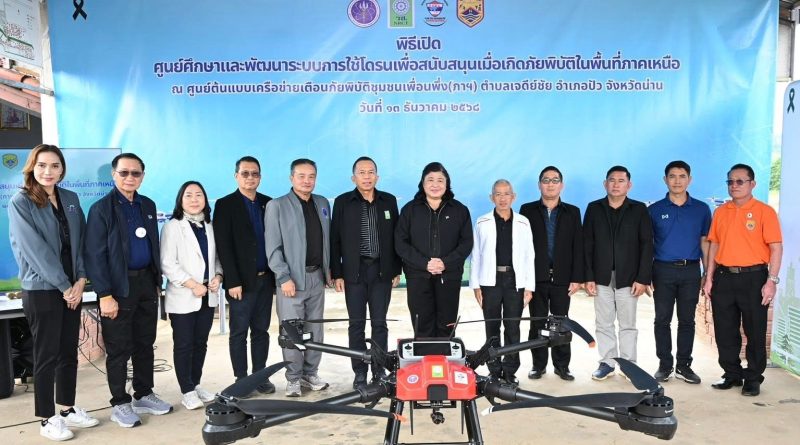 วช. เปิดศูนย์พัฒนาระบบการใช้โดรนเพื่อสนับสนุนเมื่อเกิดภัยพิบัติ ณ ศูนย์ต้นแบบเครือข่ายเตือนภัยพิบัติชุมชนเพื่อนพึ่ง(ภาฯ) ต.เจดีย์ชัย อ.ปัว จ.น่าน