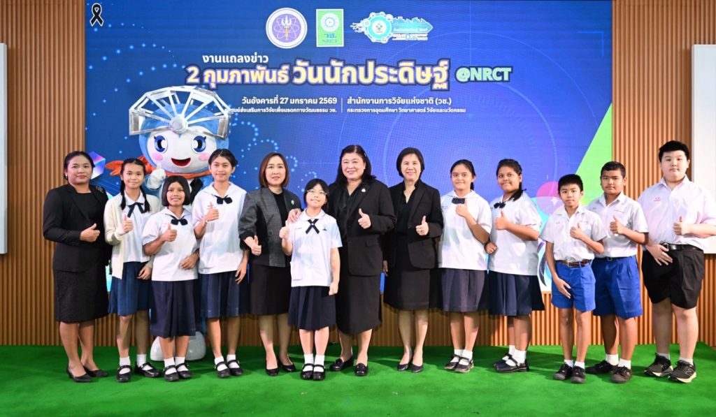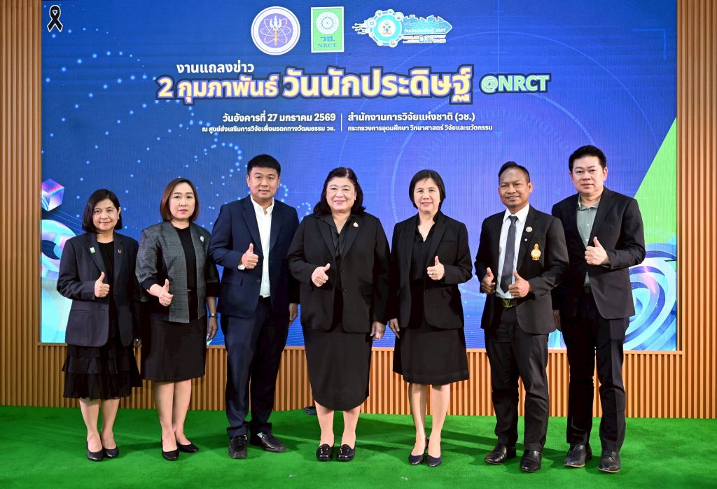 วันที่ 27 มกราคม 2569 : สำนักงานการวิจัยแห่งชาติ(วช.) กระทรวงการอุดมศึกษา วิทยาศาสตร์ วิจัยและนวัตกรรม จัดงานแถลงข่าว “2 กุมภาพันธ์ วันนักประดิษฐ์ @NRCT” โดย ดร.วิภารัตน์ ดีอ่อง ผู้อำนวยการสำนักงานการวิจัยแห่งชาติ เป็นประธาน พร้อมด้วย คณะนักประดิษฐ์ผู้ได้รับรางวัลการประกวดสิ่งประดิษฐ์และนวัตกรรมระดับเยาวชน ทั้งในระดับประถมศึกษาตอนปลาย, ระดับมัธยมศึกษา, ระดับอาชีวศึกษา, ระดับอุดมศึกษา และมหกรรมการประกวดสิ่งประดิษฐ์และนวัตกรรมนานาชาติ ผู้บริหารหน่วยงาน คณะผู้บริหาร วช. เข้าร่วมในพิธี ณ ศูนย์ส่งเสริมการวิจัยเพื่อมรดกทางวัฒนธรรม