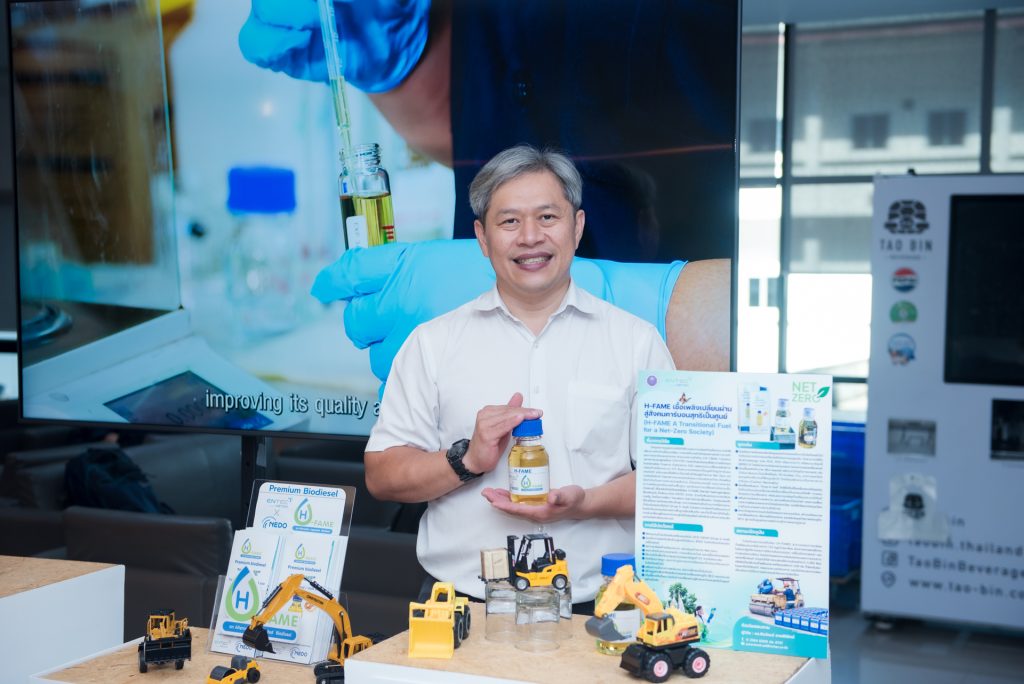 3. ไบโอดีเซลพรีเมียม H-FAME เพื่อการขนส่งคาร์บอนตํ่า สามารถเติมในรถบรรทุกหนักและเครื่องจักรกลที่ใช้เครื่องยนต์ดีเซลได้ทันทีโดยไม่ต้องดัดแปลง จึงช่วยลดการปล่อยก๊าซเรือนกระจกในภาคขนส่งได้ในราคาต้นทุนที่เหมาะสมในช่วงเปลี่ยนผ่านสู่เป้าหมายการปล่อยก๊าซเรือนกระจกสุทธิเป็นศูนย์