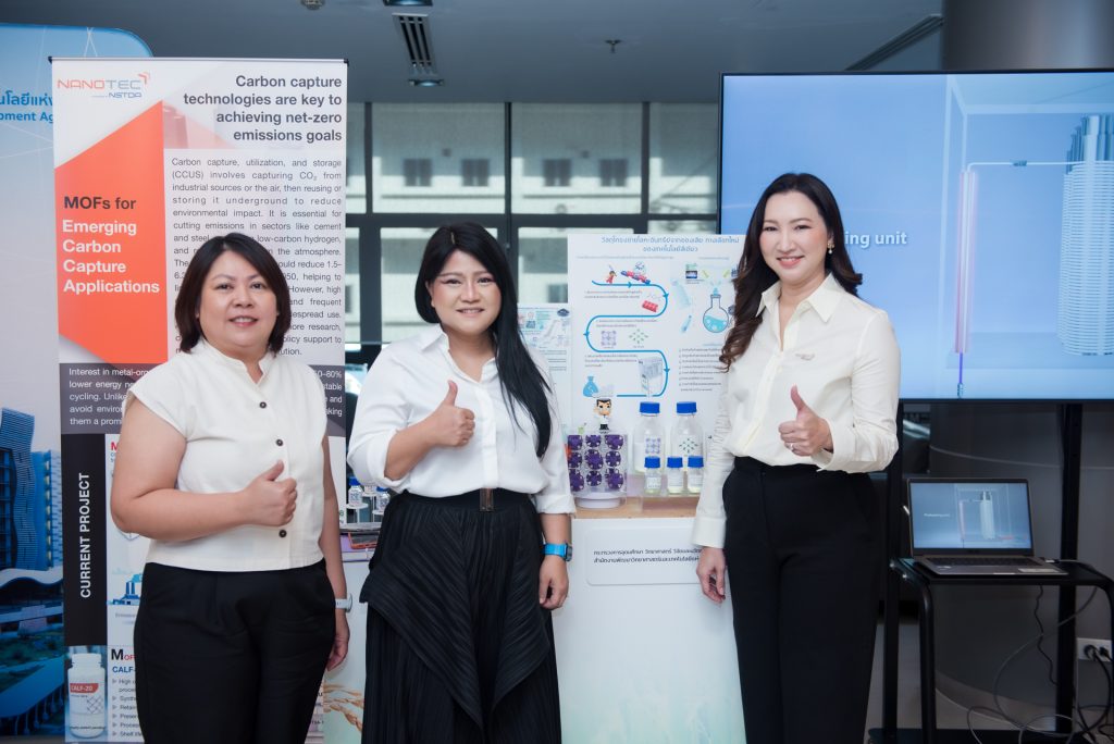 และ 5. MOFs กับการพัฒนานวัตกรรมวัสดุเพื่อสังคมสีเขียวและสังคมคาร์บอนตํ่า ที่เปลี่ยนของเหลือทิ้งจากอุตสาหกรรม ไม่ว่าจะเป็นขวดพลาสติกใช้แล้ว สนิมเหล็ก หรือน้ำยากัดแผงวงจร ให้กลายเป็นวัสดุนาโนรูพรุนมูลค่าสูง สำหรับกักเก็บก๊าซมีเทน ดูดซับสารอินทรีย์ระเหยง่าย (VOCs) และก๊าซ NOx ต้นตอของฝุ่น PM2.5 รวมถึงฆ่าเชื้อจุลชีพ ด้วยกระบวนการผลิตต่อเนื่อง ปริมาณมาก ต้นทุนต่ำ ตอบโจทย์สังคมคาร์บอนต่ำอย่างยั่งยืน ทั้งหมดนี้เป็นเพียงส่วนหนึ่งของผลงานวิจัยกว่า 100 ผลงาน ที่จะนำเสนอในงานประชุมวิชาการ สวทช. ผ่านนิทรรศการนวัตกรรมที่ตอบโจทย์การนำไปประยุกต์ใช้จริงในภาคอุตสาหกรรม เพื่อยกระดับขีดความสามารถในการแข่งขัน