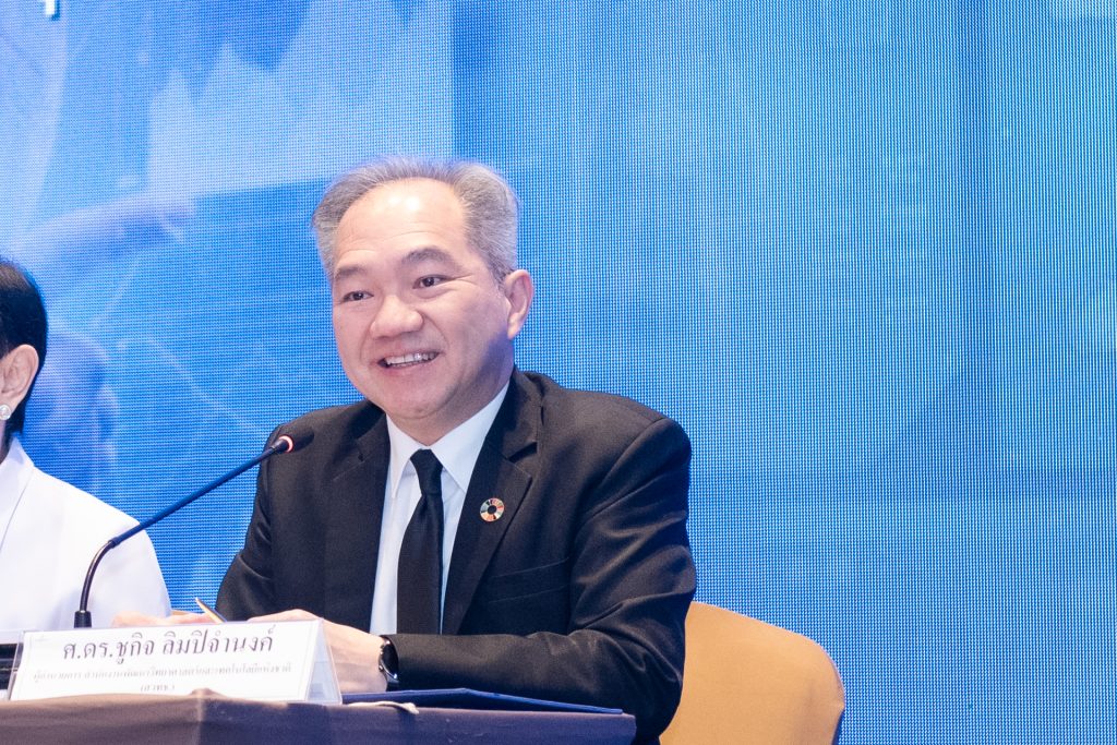 ศาสตราจารย์ ดร.ชูกิจ ลิมปิจำนงค์ ผู้อำนวยการ สวทช. กล่าวว่า ปัจจุบันโลกกำลังเปลี่ยนผ่านสู่ยุค AI อย่างเต็มตัว โดยเฉพาะในด้านการแพทย์ที่ความท้าทายสำคัญไม่ได้อยู่ที่การสร้างเทคโนโลยี แต่อยู่ที่การพิสูจน์ว่า AI นั้นมีความปลอดภัยและเชื่อถือได้จริง สวทช. จึงมุ่งสร้างระบบนิเวศนวัตกรรมที่สมบูรณ์แบบเพื่อรองรับเทคโนโลยีนี้ ซึ่งการบูรณาการความร่วมมือ 2 ส่วนสำคัญในวันนี้สะท้อนภาพระบบนิเวศนวัตกรรมที่สมบูรณ์ ได้แก่ ความร่วมมือ 3 ฝ่าย ระหว่าง อย. ในฐานะผู้กำกับดูแลหลักเกณฑ์ สวทน. ผู้สนับสนุนทุนและช่องทางเชิงพาณิชย์ และ สวทช. ซึ่งเป็นฐานการวิจัยและทดสอบทางเทคนิคมาตรฐานสากล ISO/IEC 17025 ผ่านห้องปฏิบัติการทดสอบซอฟต์แวร์ หรือ SQUAT และศูนย์ทดสอบผลิตภัณฑ์ไฟฟ้าและอิเล็กทรอนิกส์ หรือ PTEC อีกทั้งความร่วมมือระหว่างเนคเทค สวทช. และ รสท. ที่นำมาตรฐานทางเทคนิคมาผสานกับมาตรฐานทางคลินิก เพื่อให้มั่นใจว่า AI จะแปลผลได้ถูกต้องและได้รับการยอมรับจากแพทย์ผู้ใช้งานจริง