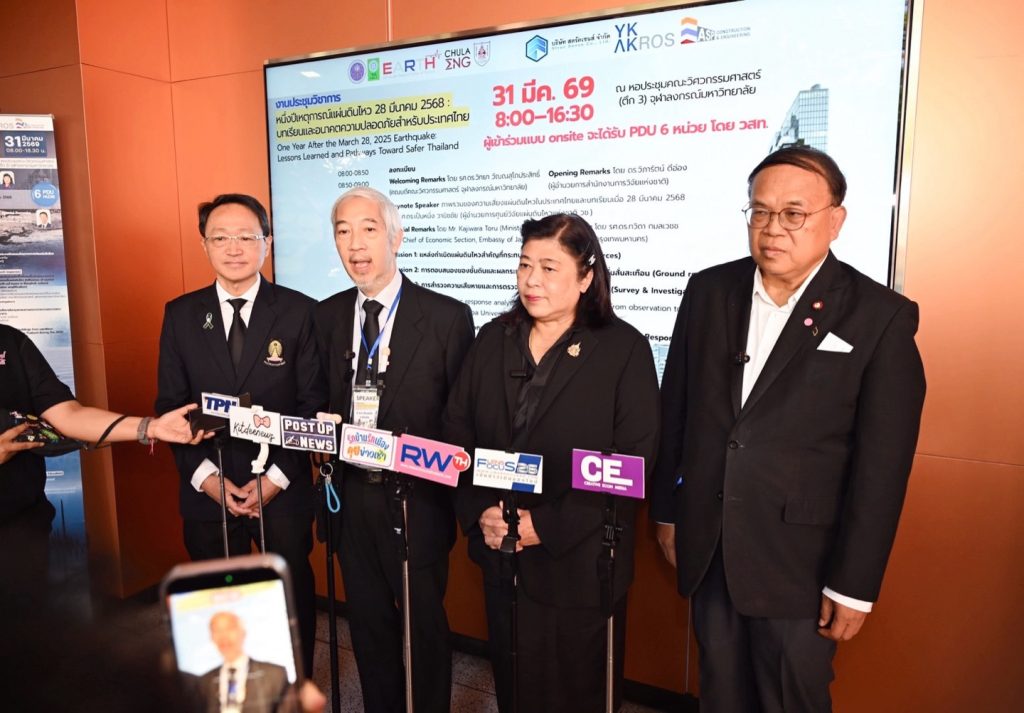 รศ.ดร.วิทยา วัณณสุโภประสิทธิ์ คณบดีคณะวิศวกรรมศาสตร์ จุฬาลงกรณ์มหาวิทยาลัย กล่าวว่า เหตุการณ์แผ่นดินไหวเมื่อหนึ่งปีที่ผ่านมาสะท้อนให้เห็นถึงความสำคัญของการเตรียมความพร้อมในการรองรับสถานการณ์วิกฤติ โดยมีสิ่งสำคัญจึงอยู่ที่การบริหารจัดการ การเรียนรู้ และการปรับตัว เพื่อให้สามารถรับมือกับสถานการณ์ได้อย่างมีประสิทธิภาพ การประชุมครั้งนี้จึงมีบทบาทสำคัญในการสร้างความตระหนักรู้ต่อเหตุการณ์ที่เกิดขึ้น พร้อมทั้งเปิดโอกาสให้หน่วยงาน นักวิจัย และภาคีเครือข่ายจากหลากหลายสาขา ได้ร่วมแลกเปลี่ยนองค์ความรู้และประสบการณ์ โดยคณะวิศวกรรมศาสตร์ จุฬาลงกรณ์มหาวิทยาลัยเองก็มีผลงานวิจัยที่ครอบคลุมหลายด้าน ซึ่งจะช่วยต่อยอดไปสู่การพัฒนาแนวทางที่เหมาะสม อันจะนำไปสู่การเสริมสร้างความปลอดภัย และทำให้สังคมไทยสามารถอยู่ร่วมกับความเสี่ยงจากแผ่นดินไหวได้อย่างมั่นคงและปลอดภัยยิ่งขึ้น