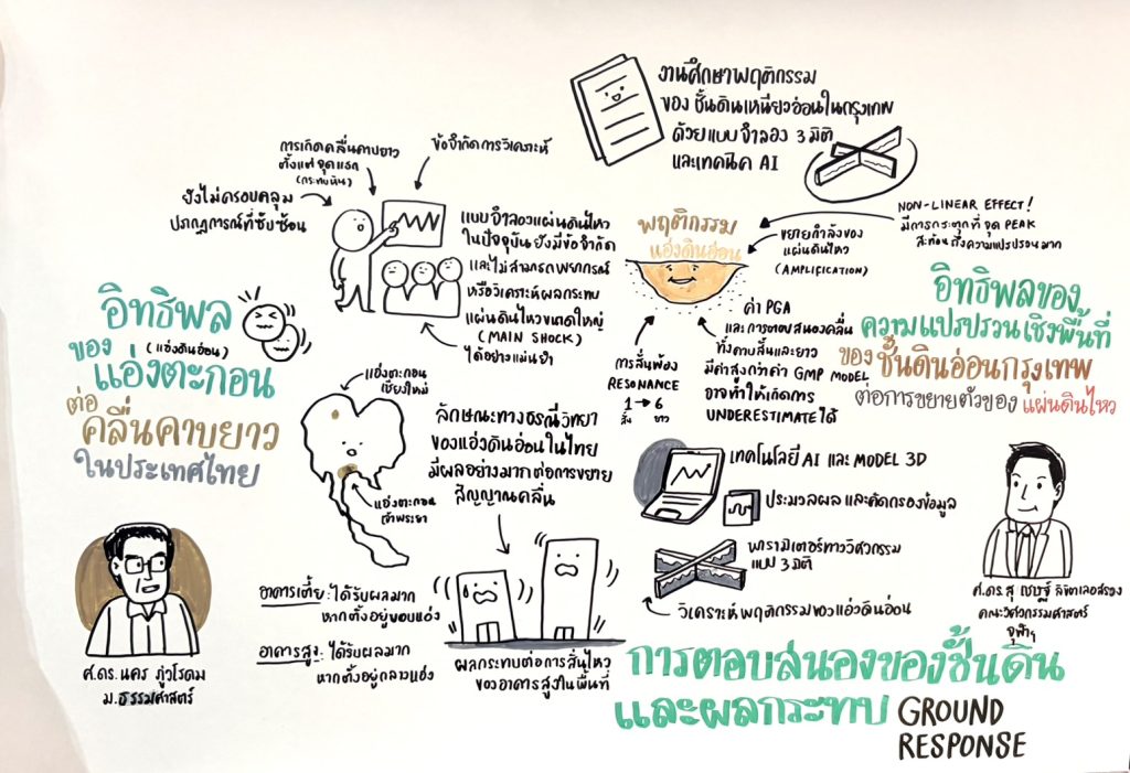 การประชุมครั้งนี้ได้รับเกียรติจากผู้ทรงคุณวุฒิ ผู้เชี่ยวชาญทั้งจากประเทศไทยและนานาชาติ ร่วมถ่ายทอดองค์ความรู้ ประสบการณ์ และถอดบทเรียนจากเหตุการณ์แผ่นดินไหวที่เกิดขึ้น เพื่อนำไปสู่การพัฒนาแนวทางการรับมือภัยพิบัติอย่างมีประสิทธิภาพ โดยนำเสนอใน 6 ประเด็นสำคัญ ดังนี้Session 1: แหล่งกำเนิดแผ่นดินไหวสำคัญที่กระทบประเทศไทย (Seismic sources)- รอยเลื่อนสะกาย: ศักยภาพการก่อแผ่นดินไหวและผลกระทบต่อประเทศไทย โดย รศ.ดร.ภาสกร ปนานนท์ มหาวิทยาลัยเกษตรศาสตร์- รอยเลื่อนมีพลังในประเทศไทยและศักยภาพการก่อแผ่นดินไหว โดย ดร.วีระชาติ วิเวกวิน กรมทรัพยากรธรณี Session 2: การตอบสนองของชั้นดินและผลกระทบของสภาพธรณีเทคนิคต่อคลื่นสั่นสะเทือน (Ground response) – อิทธิพลของแอ่งตะกอนต่อคลื่นคาบยาวในประเทศไทย: บทเรียนจากแผ่นดินไหว 28 มีนาคม 2568 โดย ศ.ดร.นคร ภู่วโรดม มหาวิทยาลัยธรรมศาสตร์- อิทธิพลของความแปรปรวนเชิงพื้นที่ของชั้นดินอ่อนกรุงเทพต่อการขยายตัวของคลื่นแผ่นดินไหว(Influence of spatial variability of soft soil layers in Bangkok subsoil on ground motion amplification) โดย ศ.ดร.สุเชษฐ์ ลิขิตเลอสรวง ศูนย์เชี่ยวชาญเฉพาะทางวิศวกรรมธรณีเทคนิคและธรณีสิ่งแวดล้อม จุฬาลงกรณ์มหาวิทยาลัยSession 3: การสำรวจความเสียหายและการตรวจสอบภาคสนามหลังแผ่นดินไหว (Survey & Investigation)- การวิเคราะห์แบบจำลองไฟไนท์เอลิเม้นต์ของชิ้นส่วนคาน (Link Beam) กับกำแพงโครงสร้าง (Structural Wall)เพื่อตรวจสอบความเหนียวภายใต้การเคลื่อนตัวทางข้างของอาคาร โดยใช้รายละเอียดการเสริมเหล็กที่ตรวจพบจากชิ้นส่วนโครงสร้างจริงที่ผิดไปจากข้อกำหนดเรื่องระยะฝังยึดของเหล็กในคอนกรีต โดย ดร.ปั้นเจตน์ ธรรมรักษ์ สถาบันเทคโนโลยีแห่งเอเชีย- ภาพรวมความเสียหายในกรุงเทพมหานครจากรายงานตรวจสอบกว่า 6,000 อาคาร โดย ผศ.ดร.ปานนท์ ลาชโรจน์ มหาวิทยาลัยมหิดล- บทเรียน 1 ปี หลังแผ่นดินไหว 28 มีนาคม 2568: ความต่อเนื่องหลังภัยพิบัติของเมืองเชียงใหม่ โดย รศ.ดร.ชยานนท์ หรรษภิญโญ มหาวิทยาลัยเชียงใหม่- Detection of damaged buildings from satellites: A case study of buildings in Thailand during the 2025 Myanmar earthquake โดย Prof. Masashi Matsuoka จาก Science TokyoSession 4: พฤติกรรมและการออกแบบโครงสร้างเพื่อรองรับแรงแผ่นดินไหว (Structural Response & Design)- ผลตอบสนองของอาคารขนาดเล็กในพื้นที่ภาคเหนือของไทยและแนวทางลดผลกระทบจากแผ่นดินไหว โดย ศ.ดร.สุทัศน์ ลีลาทวีวัฒน์ มหาวิทยาลัยเทคโนโลยีพระจอมเกล้าธนบุรี- วิธีการที่เหมาะสมในการคำนวณวิเคราะห์โครงสร้างเพื่อต้านทานแผ่นดินไหว โดย รศ.ดร.ฉัตรพันธ์ จินตนาภักดี จุฬาลงกรณ์มหาวิทยาลัย- การซ่อมแซมและเสริมกำลังอาคารสูงที่ได้รับความเสียหายทางโครงสร้างระดับสีแดงจากแผ่นดินไหวมัณฑะเลย์ โดย ศ.ดร.อมร 