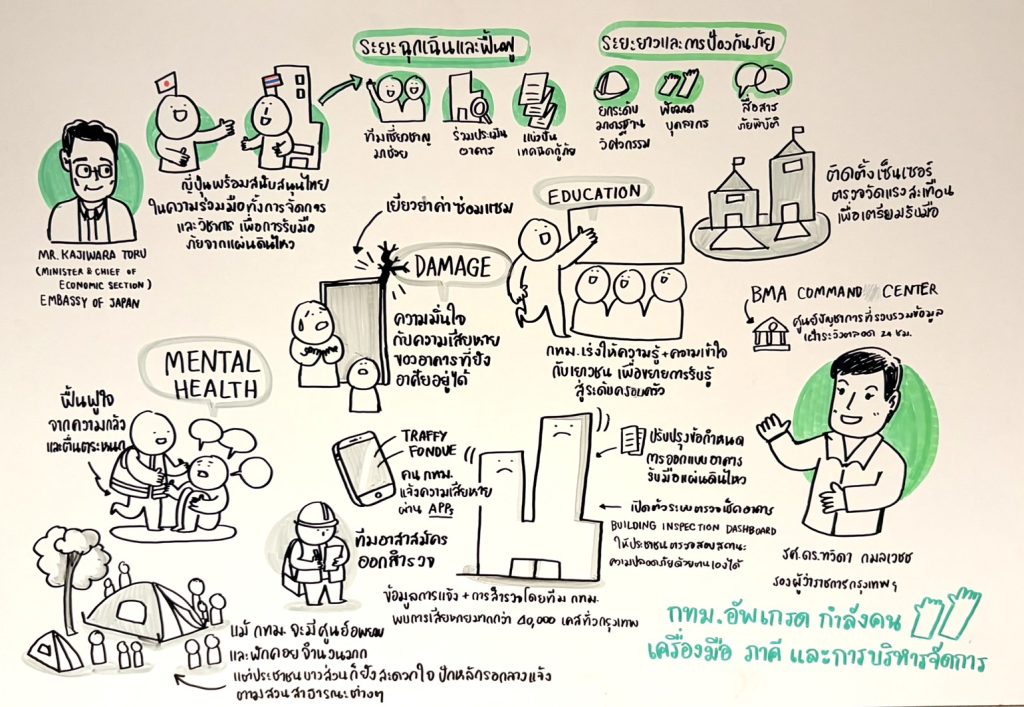 รศ.ดร.ทวิดา กมลเวชช รองผู้ว่าราชการกรุงเทพมหานคร กล่าวถึงมาตรการรับมือภายหลังเหตุแผ่นดินไหวว่า การประเมินความเสียหายอย่างรวดเร็วมีความสำคัญอย่างยิ่ง โดยการนำเทคโนโลยีเข้ามาช่วยทำให้ประชาชนสามารถแจ้งเหตุได้อย่างทันท่วงที ส่งผลให้หน่วยงานที่เกี่ยวข้องสามารถเข้าตรวจสอบได้แบบเรียลไทม์ในช่วง 72 ชั่วโมงแรก โดยมีการระดมอาสาสมัครเพื่อช่วยจำแนกระดับความเสียหายของอาคาร โดยแบ่งเป็นเคสสีเขียว เหลือง และแดง ควบคู่กับการจัดเตรียมที่พักพิง การดูแลด้านสาธารณสุข และการเยียวยาผู้ได้รับผลกระทบอย่างทั่วถึง