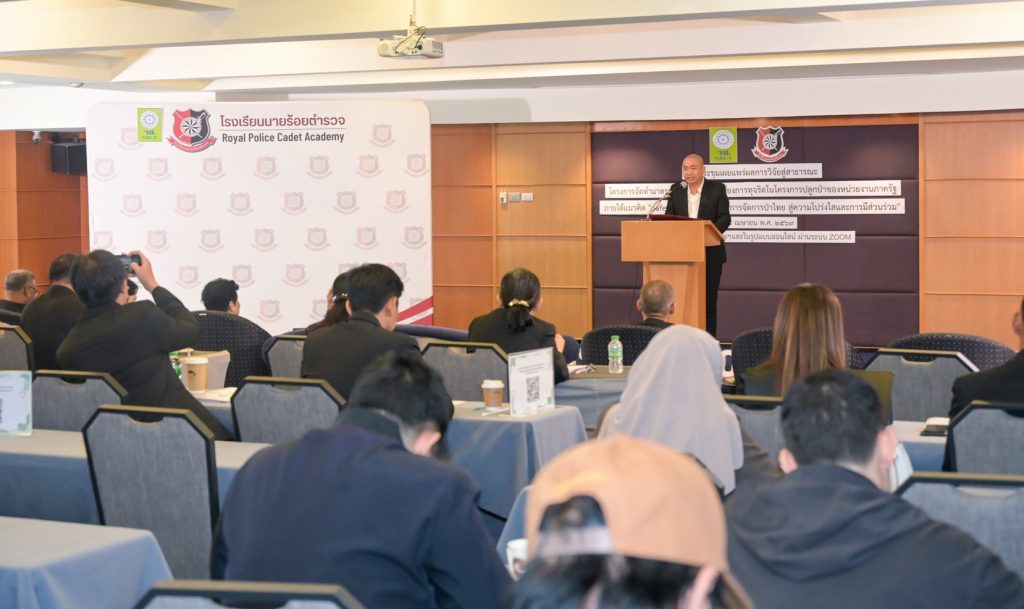 ด้าน รศ.พ.ต.อ.สุรัตน์ สาเรือง คณบดีคณะนิติวิทยาศาสตร์ โรงเรียนนายร้อยตำรวจ หัวหน้าโครงการวิจัย ได้นำเสนอผลการดำเนินงานวิจัยเรื่อง “การจัดทำมาตรการป้องกันความเสี่ยงการทุจริตในโครงการปลูกป่าของหน่วยงานภาครัฐ” โดยชี้ให้เห็นถึงช่องว่างและความท้าทายของระบบเดิม พร้อมเสนอแนวทางการพัฒนากลไกเชิงป้องกันที่สามารถนำไปประยุกต์ใช้ได้จริงในระดับนโยบายและปฏิบัติ
