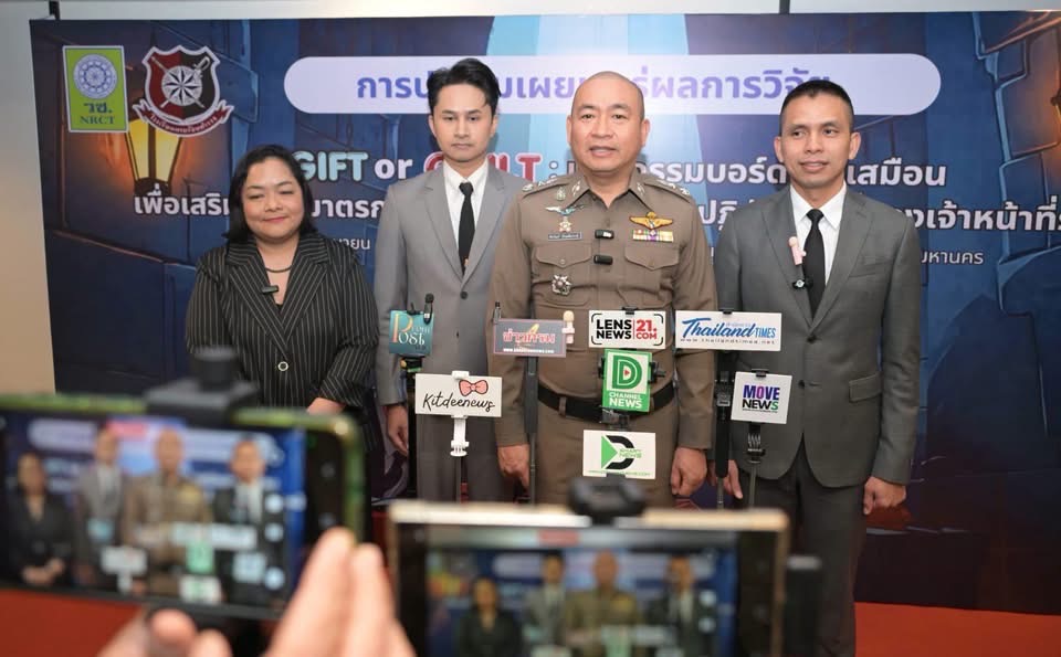 วันที่ 17 เมษายน 2569 : สำนักงานการวิจัยแห่งชาติ (วช.) กระทรวงการอุดมศึกษา วิทยาศาสตร์ วิจัยและนวัตกรรม ร่วมกับ โรงเรียนนายร้อยตำรวจ จัดกิจกรรมเผยแพร่ผลงานวิจัย “Gift or Guilt: นวัตกรรมบอร์ดเกมเสมือนเพื่อเสริมสร้างมาตรการไม่รับของขวัญในการปฏิบัติหน้าที่รัฐ” โดยมี พันตำรวจโท วิชิต อาษากิจ เป็นหัวหน้าโครงการ ซึ่งได้รับเกียรติจาก ศาสตราจารย์ พลตำรวจตรี ดร.ชัชนันท์ ลีระเติมพงษ์ รองผู้บัญชาการโรงเรียนนายร้อยตำรวจ เป็นประธาน พร้อมด้วยคณะนักวิจัยและผู้แทนหน่วยงานภาคีเครือข่าย เข้าร่วม ณ โรงแรมรอยัล ริเวอร์ กรุงเทพฯ